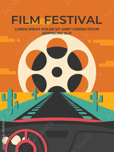 Cinema movie time retro poster banner template. Vector paper cut illustration.