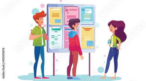 Cinema self service terminal. Man buying movie ticket at self service kiosk, vector illustration. E-ticket machine.