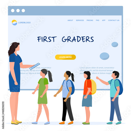 Cinema self service vector website template, landing page design for website and mobile site development. Family making cinema ticket purchase at self service kiosk. E-ticket machine.