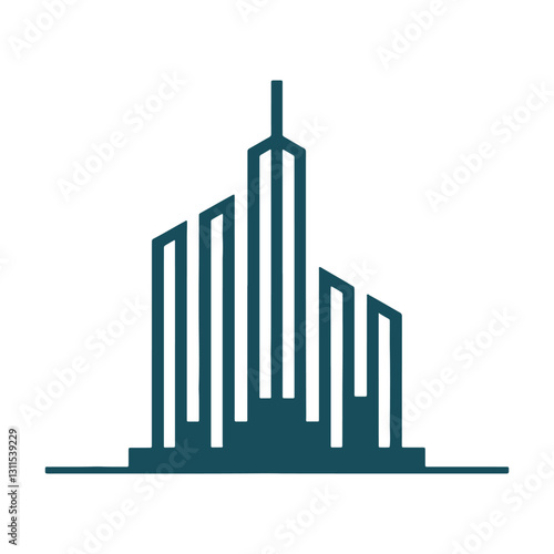 City icon. Cityscape skyline with vector building. Urban silhouette. Business town landscape isolated on white background