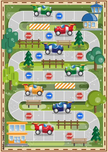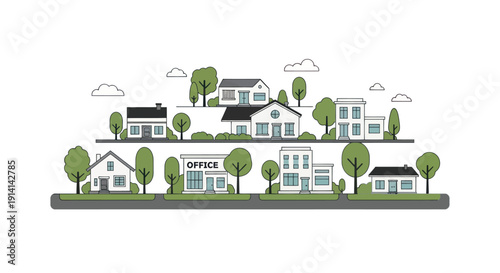City landscape with road and park concept vector banners. Bus stop and car on a street. Vector illustration in flat style design.
