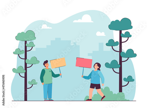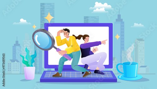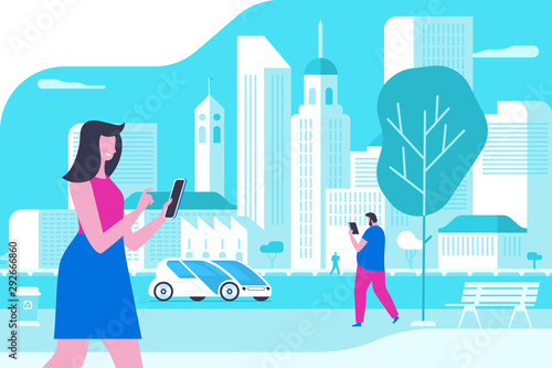 Male and female characters architects or engineers building modern city model, vector flat illustration. Construction engineer services, city planning, development concept for web banner, website page
