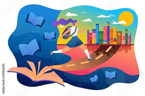 City polluted with industrial factory smoke. Woman boating on the river full of garbage, flat vector illustration. Stop water and air pollution. Ecological problem. Save environment poster template.