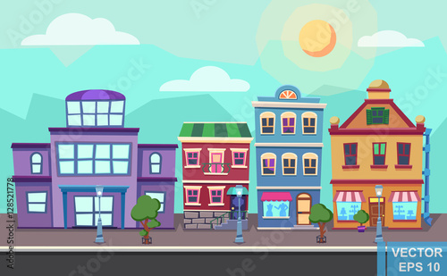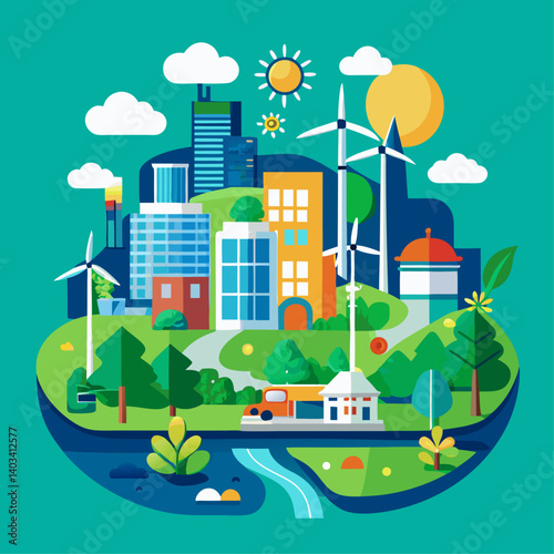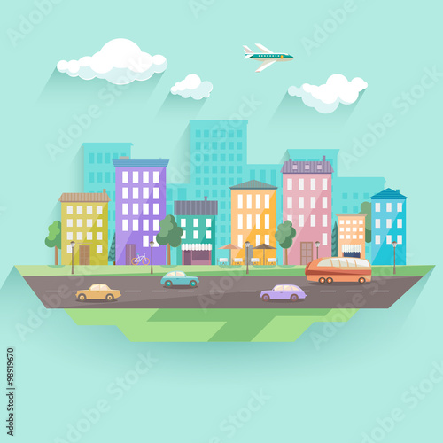 City stadium flat design vector illustration. Sportsmen and sportswomen running and jumping. Track and field athletics competition. Individual sports.