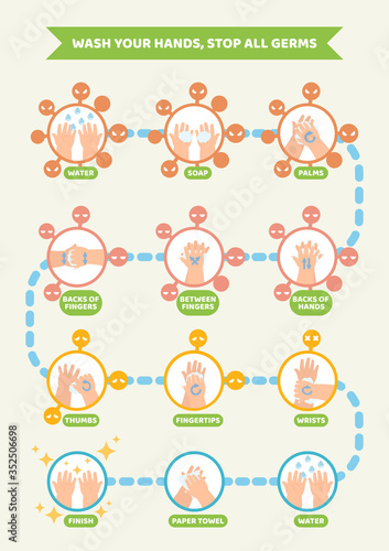 Clean, separate, cook and chill four steps for food safety vector illustration. Flat cartoon poster with meal processing stages icons preventing and reducing risks of digestion system disease