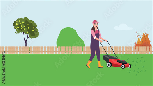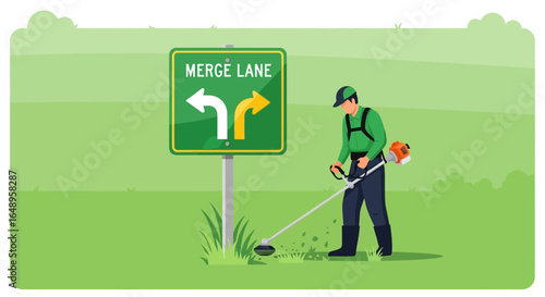 Cleaning car interior vector illustration. Worker making use of vacuum cleaner. Car repair services or car wash services flat style design.