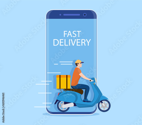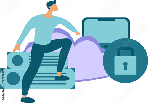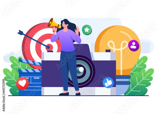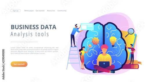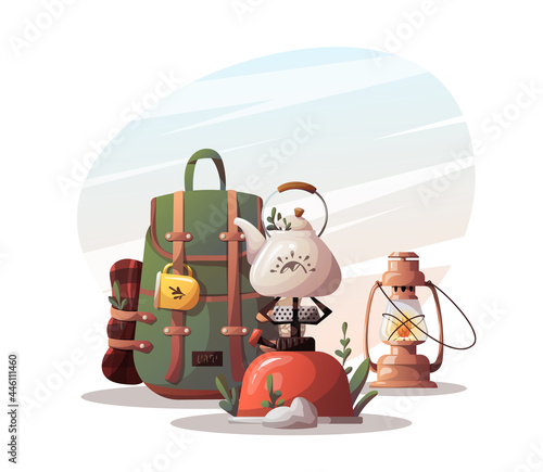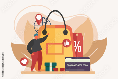 Cleaning company services vector flat style design illustration. Spring house cleaning concept with big vacuum cleaner and tiny characters for web banner, website page etc.