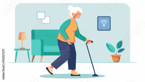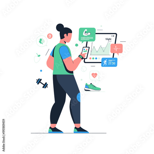 Vector illustration of cleaning lady with sponge mop. Cleaning people flat style design element, icon isolated on white background.