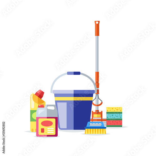 Cleaning service company concept vector illustration. House Cleaning tools poster design in flat style.
