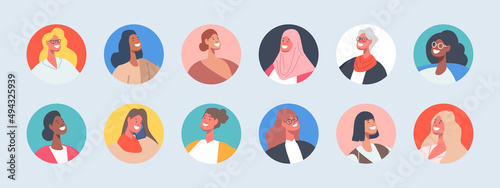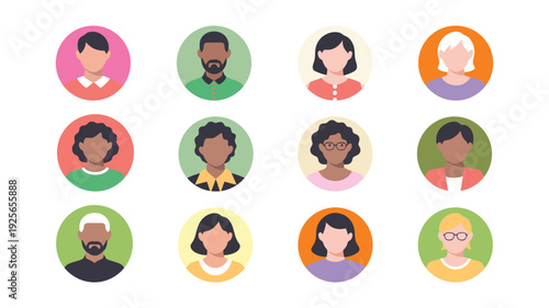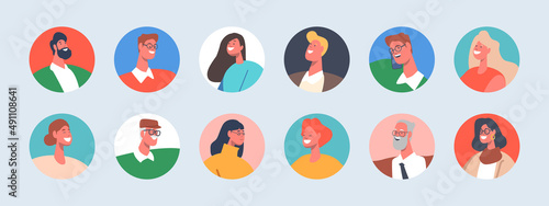 Diverse smart people round frame vector illustration. Clever male and female student avatar set isolated on white background. Icon collection with face portrait of cheerful guys and girls