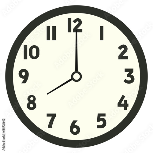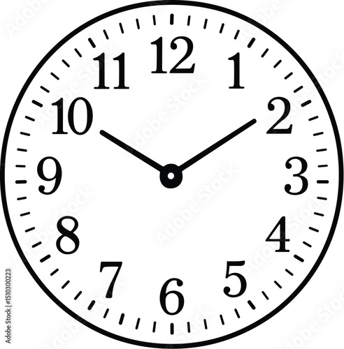 Clock face vector. Time watch icon. Round wall office alarm timer with arrow pointer for minute and hour countdown isolated on white background