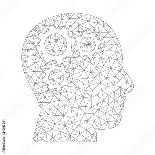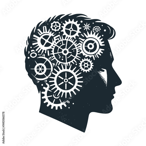 Human head with cogwheel gear clock mechanism, vector illustration in paper art modern craft style. Thinking, making decision concept, steampunk style.