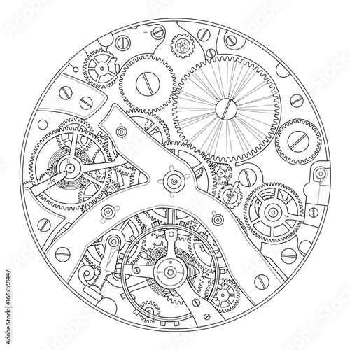 Mechanical clock or watch with cogwheel gear mechanism, vector illustration in paper art modern craft style. Steampunk style clock.