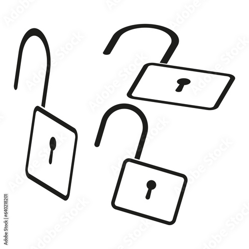 Close and open lock vector icon. Isometric shield shape locker with keyhole isolated on white background. Access control and protection, cyber security