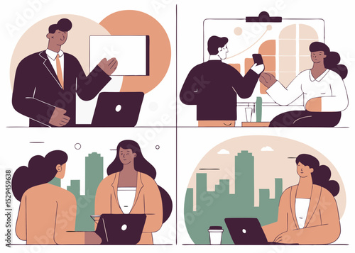 Clothing store set, vector flat illustration. Male and female characters shopping for clothes and shoes in fashion boutiques. Men and women fashion shop interior with goods on sale, buyers and sellers
