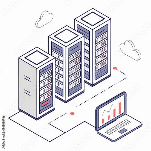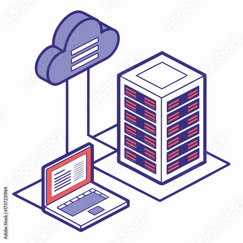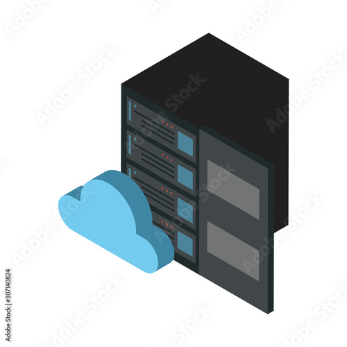 Cloud data server vector. Isometric technology database center for storage information. Network infrastructure, datacenter 3d icon isolated on white background