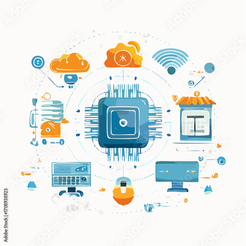 Cloud hosting service for virtual data storage isometric vector illustration. Business database backup and secure protection hardware