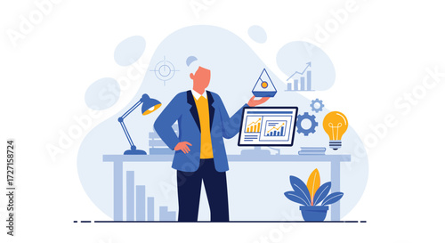 Cloud service access control service vector. Guard man checking user before working with storage server data center isometric 3d design. Protection password code virtual security