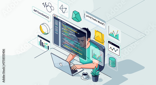 Cloud services landing page website template. Vector isometric illustration. Cloud computing technology concept with desktop pc, laptop, hosting servers, file folder connected to cloud.