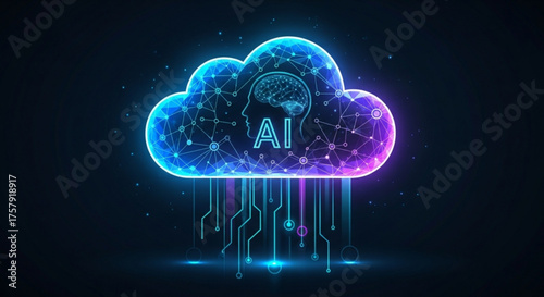 Data cloud storage low poly wireframe mesh made of points, lines and shapes. Vector polygonal art style illustration. Cloud technology poster banner template.