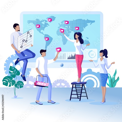 Business woman coach giving presentation or lecture, pointing at charts and diagrams on whiteboard, vector illustration. Business planning and strategy management training courses for website page etc