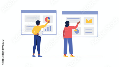 Coffee break, vector flat style design illustration. Business people man and woman drinking coffee while talking to each other. Office situation concept for web banner, website page etc.