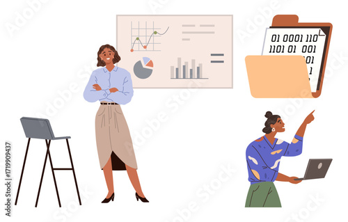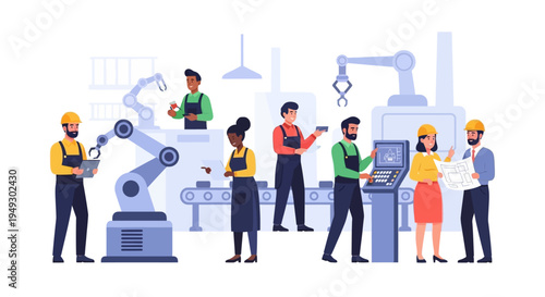 Vector illustration of coffee house people waitress, baker, waiter, boss and customer with coffee to go. Flat style design elements, icons isolated on white background.