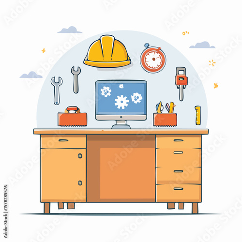 Coffee production vector flat illustration. Turkish cezve pot, glass pitcher, grinder, cup of hot bracing drink, croissant. Turkish coffee making equipment and accessories poster, banner.