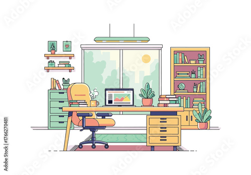 Coffee shop counter, barista making hot drink, flat vector illustration. Coffee house, bar, restaurant, cafe small business.