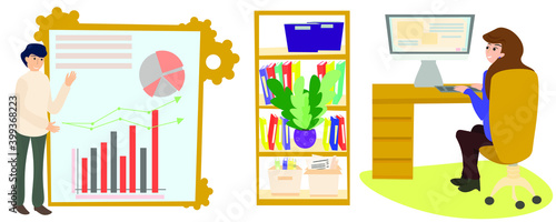 Coffee shop counter, barista making hot drink, flat vector illustration. Coffee house, bar, restaurant, cafe small business.