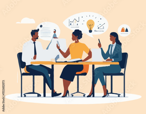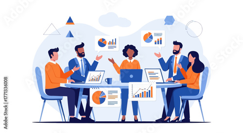 Coffee shop scene. People drinking coffee, talking to each other, discussing something, flat vector illustration. Young people friends, colleagues, business team meeting. Coffeehouse, cafe interior.