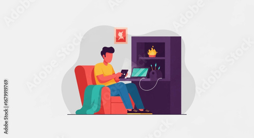 Barista preparing coffee for young woman using huge coffee maker, vector flat style design illustration. Coffee shop, coffeehouse.