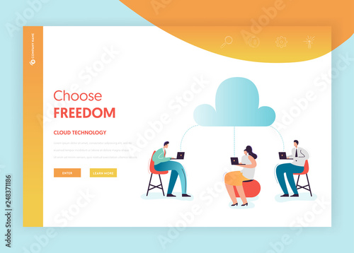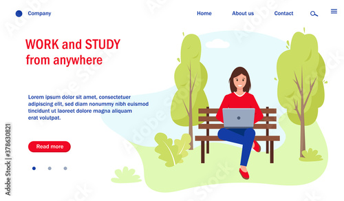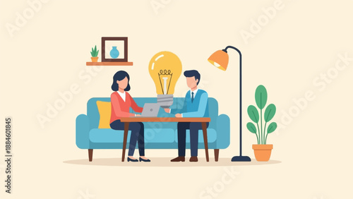 Coffee to go concept vector illustration in flat style. Couple young man and woman sitting on bench, talking to each other and drinking coffee.
