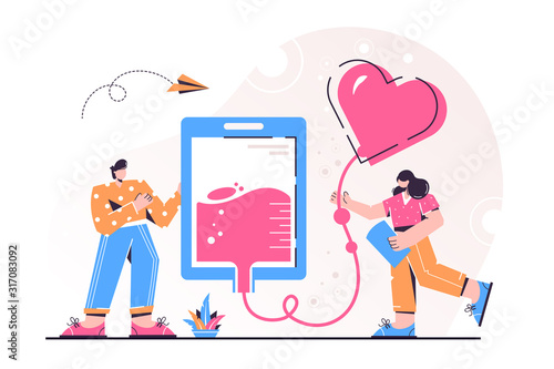 Vector illustration of big coffee to go cup and tired sleepy employees thinking about coffee and active and full of energy after drinking coffee. Coffee break concept for web banner, website page etc.