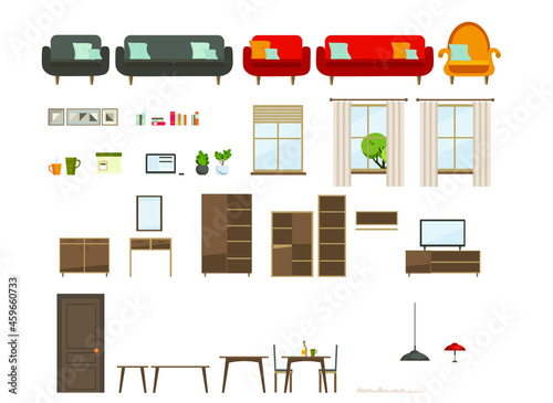 Collage photo frame mockup set. Empty photo and modern art frames for interior decoration, flat vector isolated illustration. Wall decor, plastic or wooden borders for photograph, painting, poster.