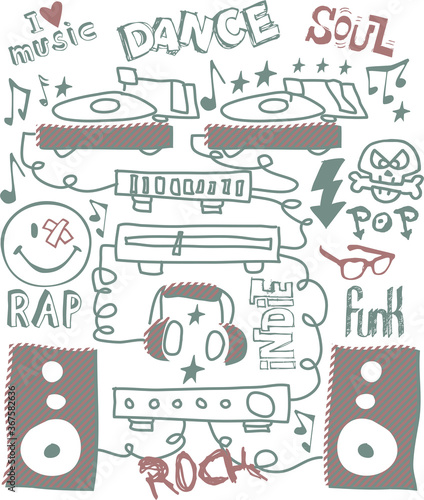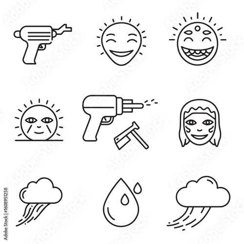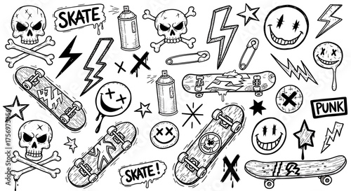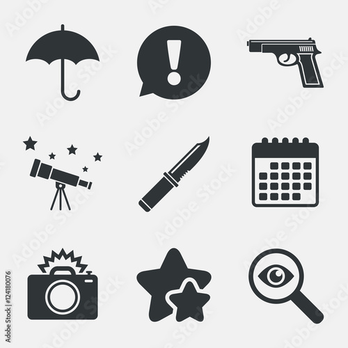 Set of agressive gang and criminal logotypes. Skulls, crossed knives and pistols, baseball bats, brass knuckles, sample text. Flat graphic style vector image.