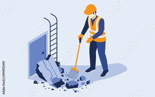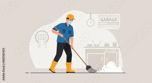 Woman cleaning floor using mop, vector flat illustration isolated on white background. Professional commercial cleaning services, mopping floors.