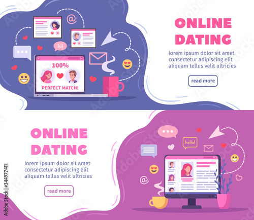 Communication vector website template, web page and landing page design for website and mobile site development. Dating, chatting via social networking concepts for web banner, website page.