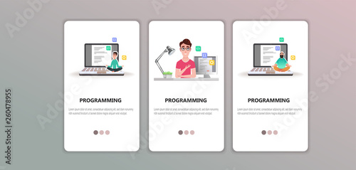 Communication technology concept vector website templates, landing page design for website and mobile site development. Global communication via smartphone making calls, group messaging, etc.