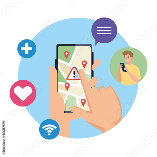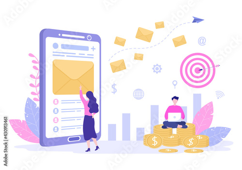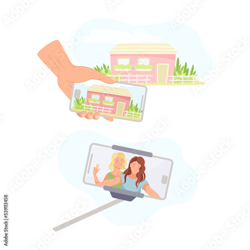 Communication with neighbors online, flat vector illustration. Neighbor group chat and online messaging.
