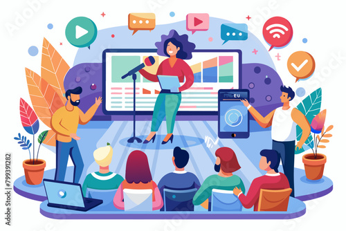 Communication with neighbors online, flat vector illustration. Neighborhood app for connecting with neighbors.