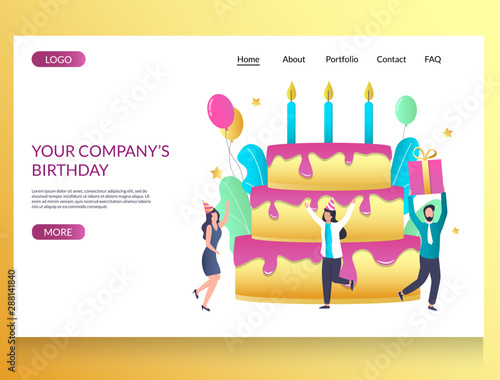 Company birthday vector website template, web page and landing page design for website and mobile site development. Corporate happy birthday party celebration.