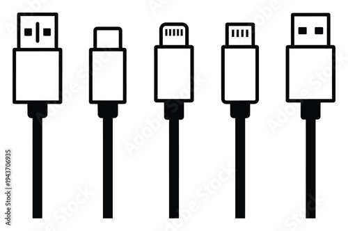 Computer cable, plug and wire realistic mockup vector set. Video, audio, usb, hdmi, network modem ethernet and electric connectors illustration