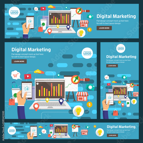 Vector set of horizontal banners with Programming language, Working and Programmer line art flat style design elements, web templates.