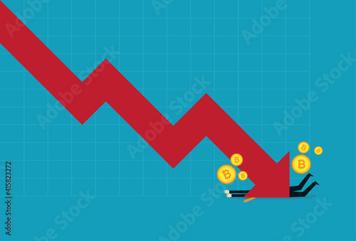 Concept for economy stock and currency market crash down. Financial background. Dollar falling and economic crisis. Vector illustration