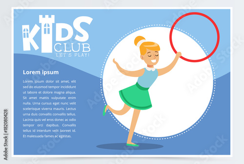 Vector concept illustration of rhythmic and artistic gymnastics. Design elements and icons in flat design. Female gymnast with sport equipment, hoop, clubs, ball, ribbon, pommel, chalk and bar