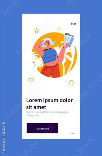 Confectioner baker selling cakes, sweet pastry. Bakery, cake shop, confectionery. Mobile app screens. Vector banner template for website and mobile development. Web site and UI design illustration.
