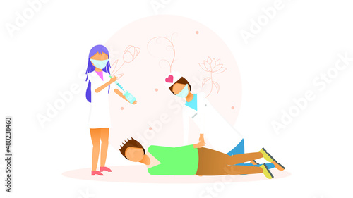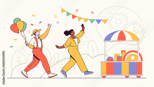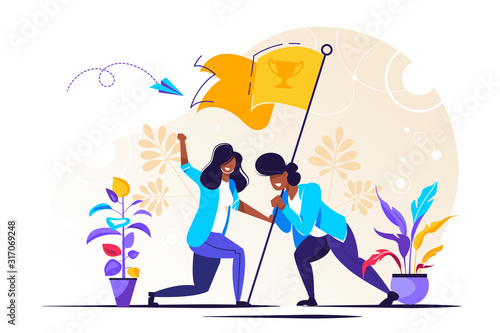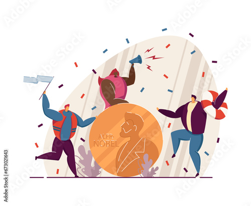Vector illustration of big birthday holiday cake and tiny people confectioners decorating it with cream. Cake making services concept for web banner, website page etc.