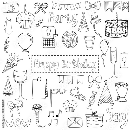 Vector seamless pattern with decorative pastry sweet food symbols, icons. Confectionery background, wrapping paper texture thin line art flat style design.