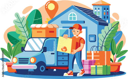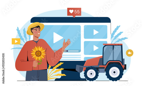 Construction engineer controls building process. Foreman organising construction works on site. Cartoon vector illustration. Man monitors progress of the construction of the apartment building.